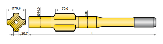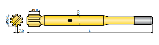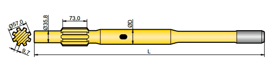 釬尾用于轉移鉆機和鉆桿的能量,一端連接于鉆機,一端連接于鉆桿,因此鉆機的能量就得以傳送到鉆頭,并最終達到掘進的目的。
